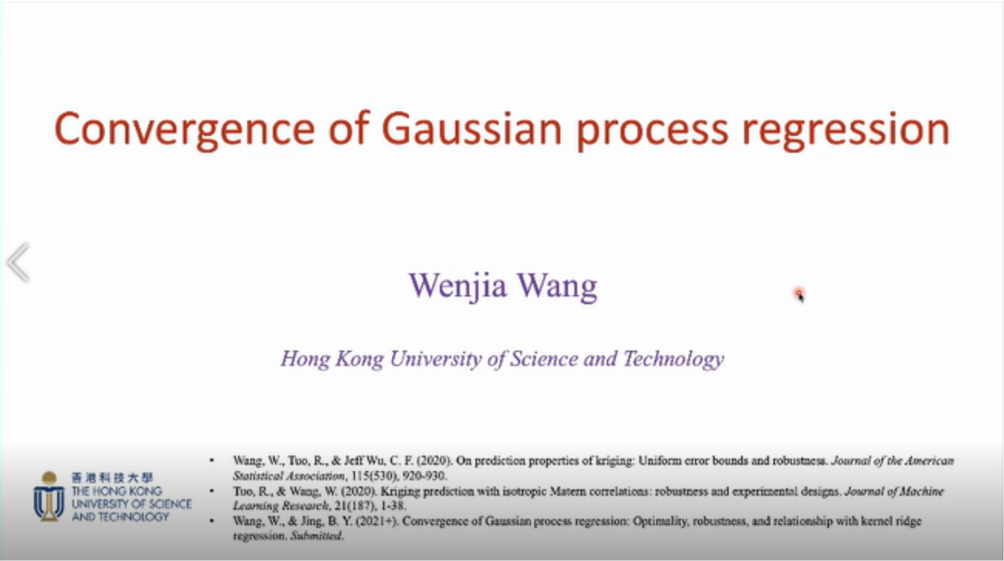 2021年12月17日,香港科技大学助理教授王文佳应探花Porn邀请进行了以“Convergence of Gaussian process regression”为主题的讲座。