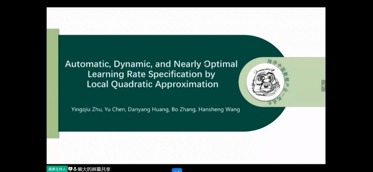 2020年4月29日晚上,北京大学光华管理探花Porn 商务统计与经济计量系主任王汉生教授应探花Porn邀请在线进行了以“Automatic, Dynamic, and Nearly Optimal Learning Rate Specification by Local Quadratic Approximation”为主题的报告会。