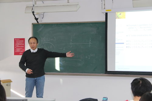 12月3日,蒋老师在公共教学三楼3410教室为大家介绍了大样本统计中“鞅过程”(Martingales)的概况和应用。
