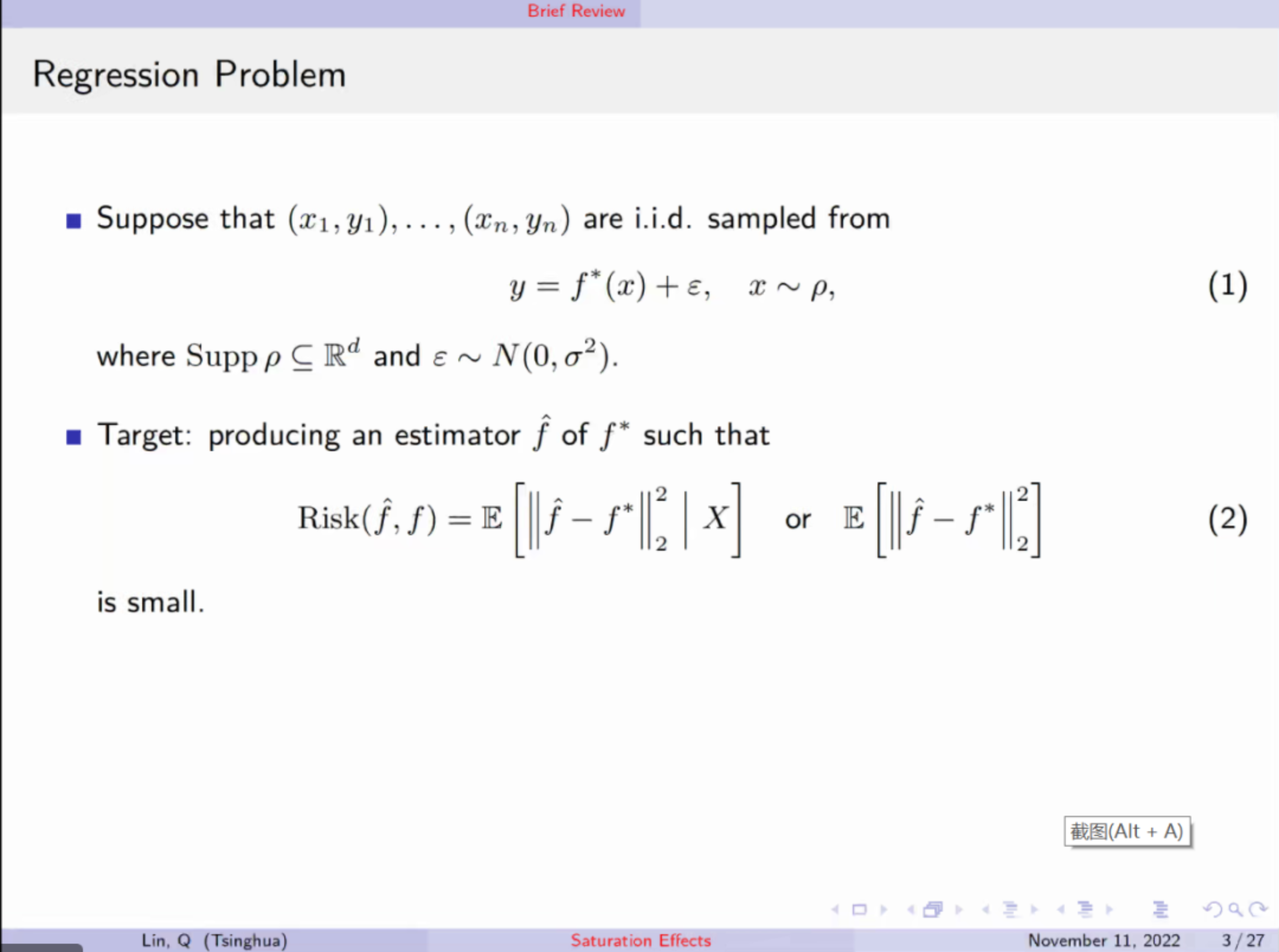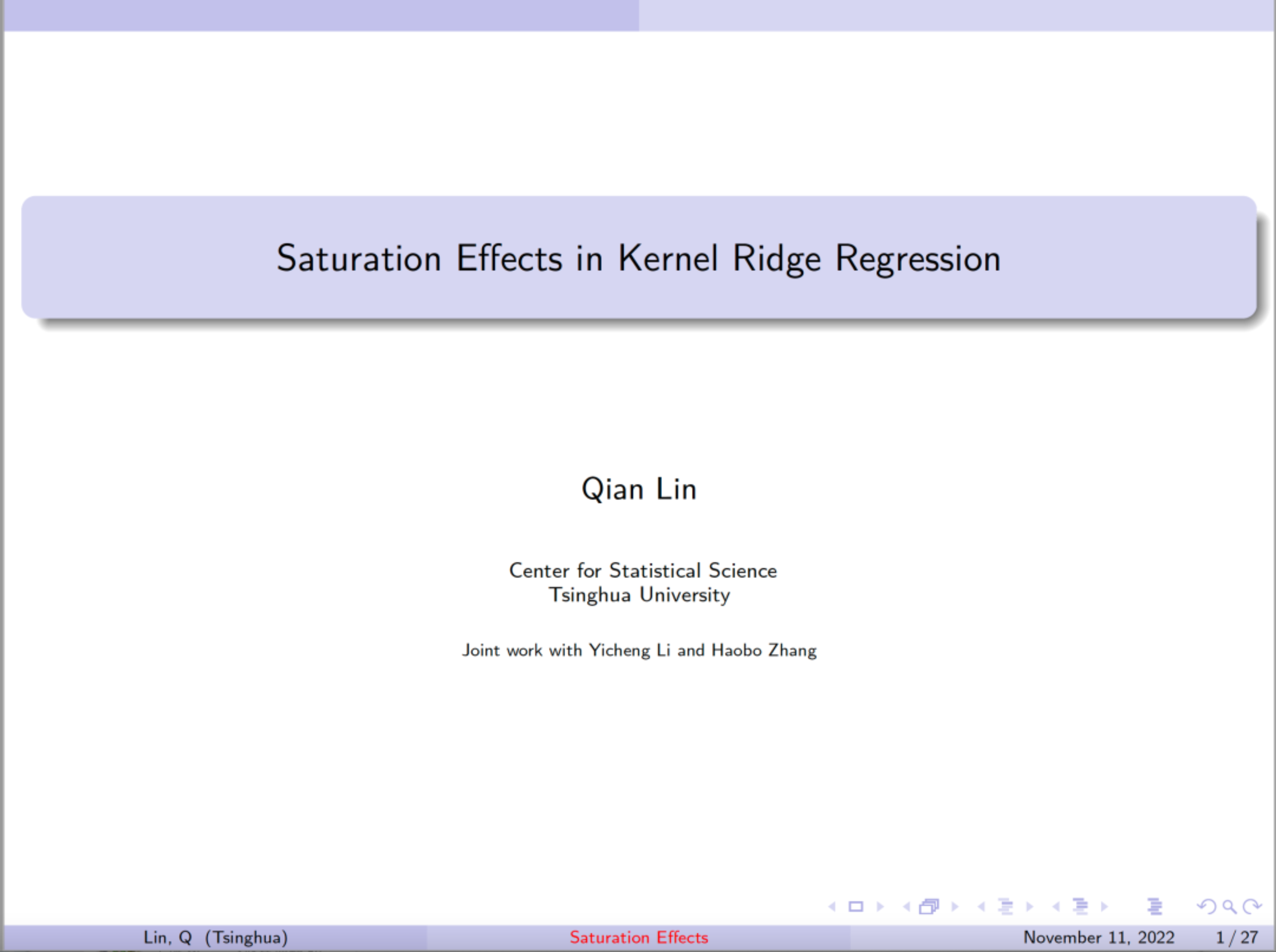 2022年11月11日上午10:00,清华大学统计中心副教授林乾应探花Porn邀请进行了以“核岭回归中的饱和效应”为主题的线上讲座。