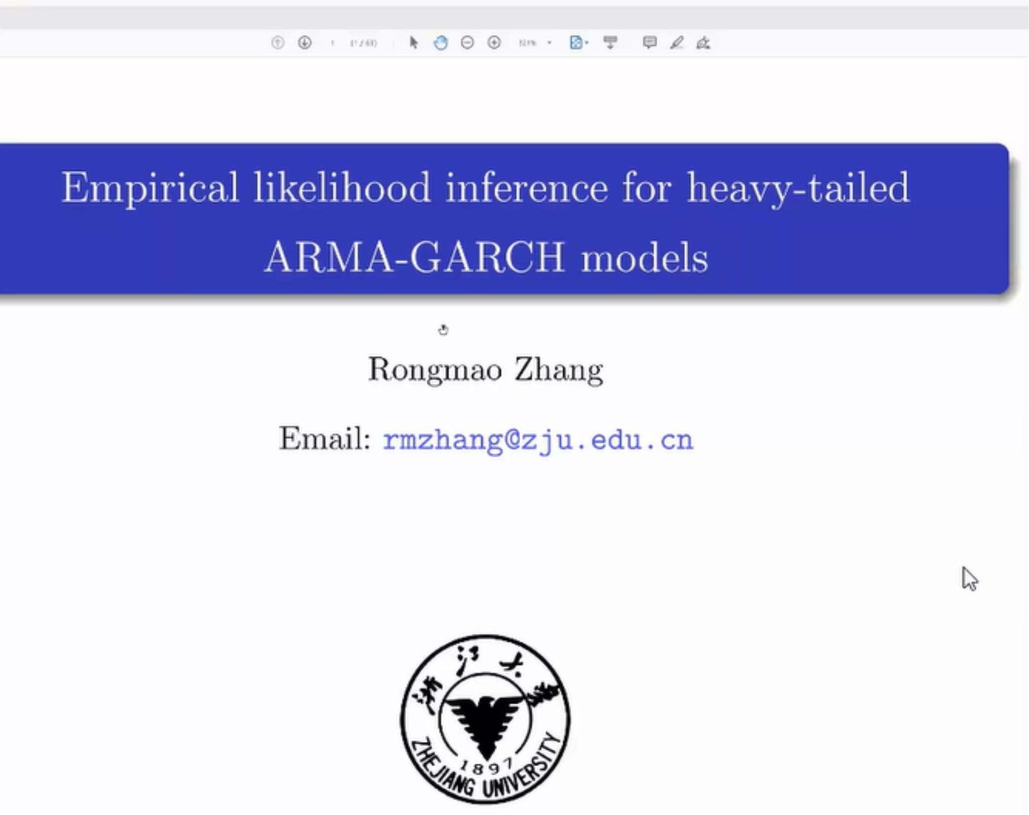 2021年12月3日上午十点,浙江大学张荣茂教授在线进行了以“Empirical likelihood inference for heavy-tailed ARMA-GARCH models”为主题的报告会。