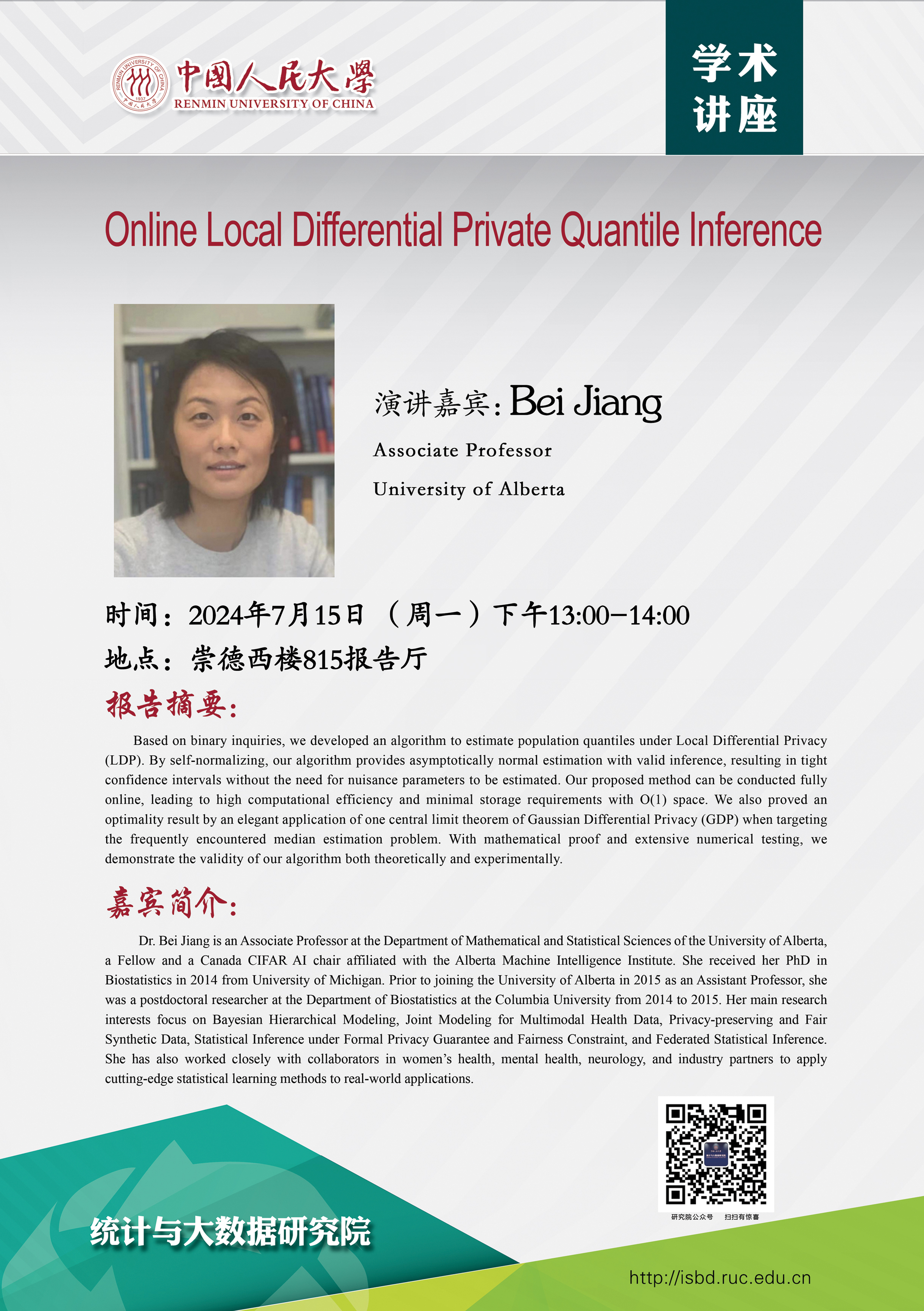 预告:探花Porn将邀请阿尔伯塔大学副教授Bei Jiang到院讲座