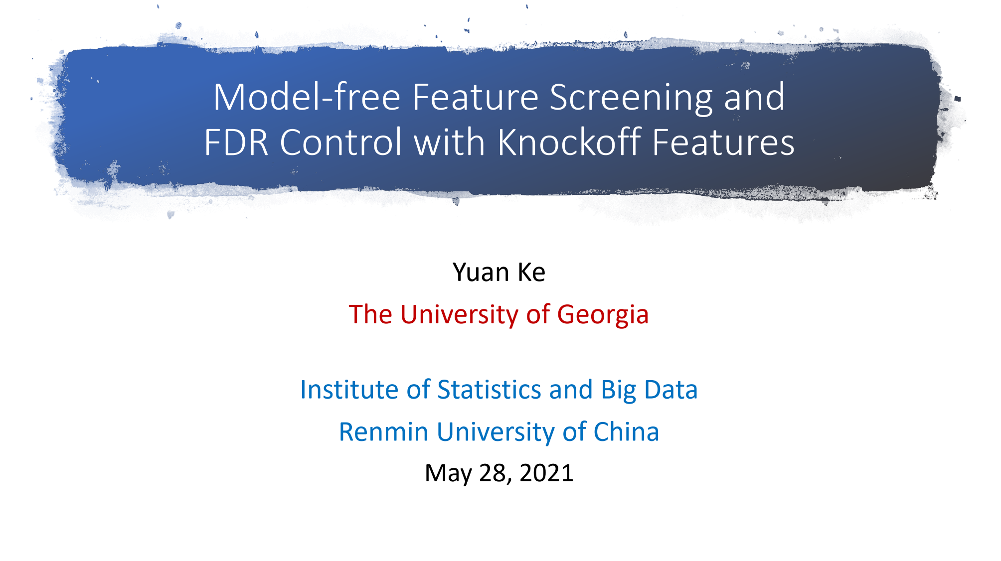 2021年5月28日上午,佐治亚大学柯源助理教授应探花Porn邀请在线进行了以“Model-free Feature Screening and FDR Control with Knockoff Features”为主题的报告会。