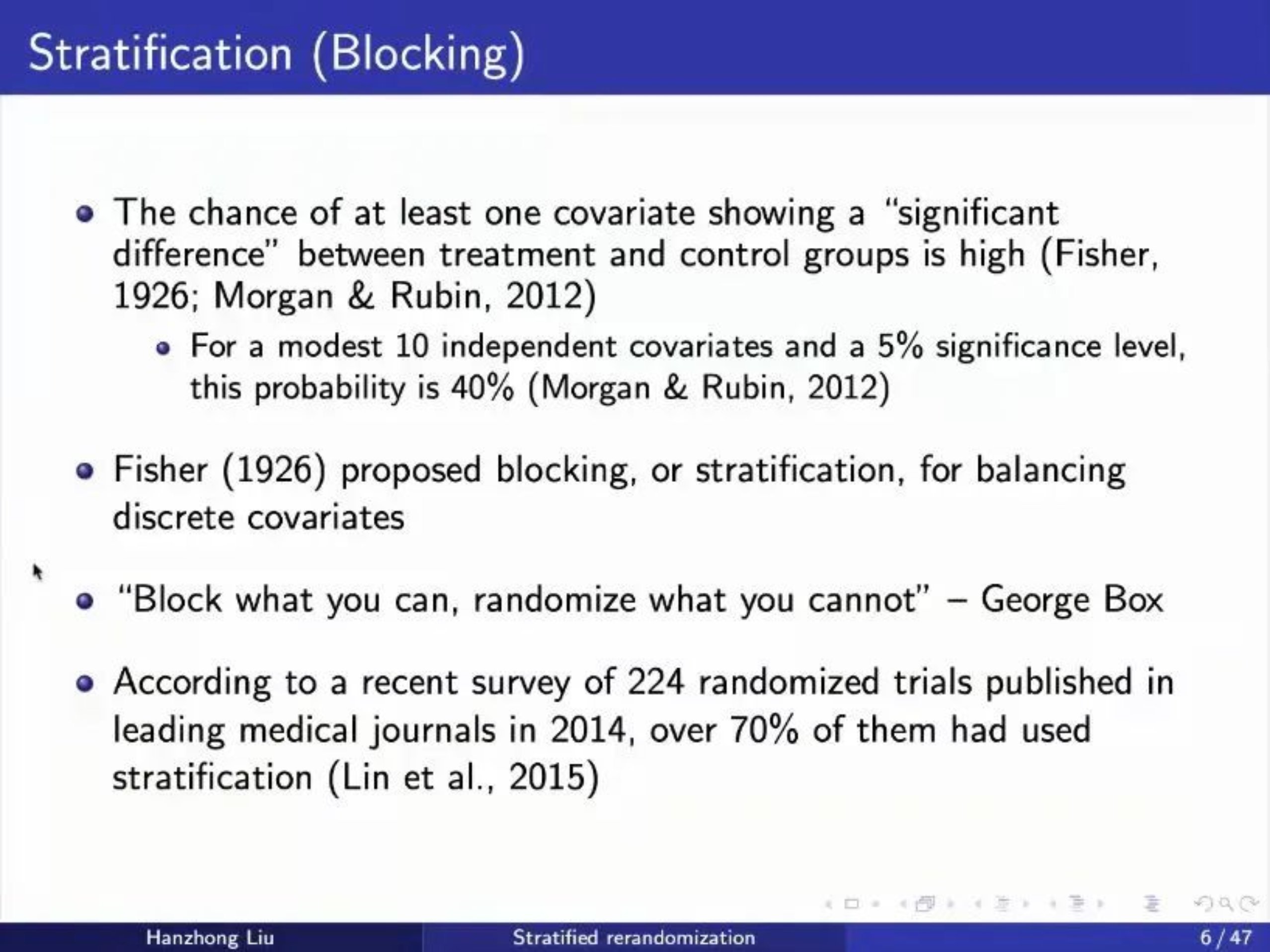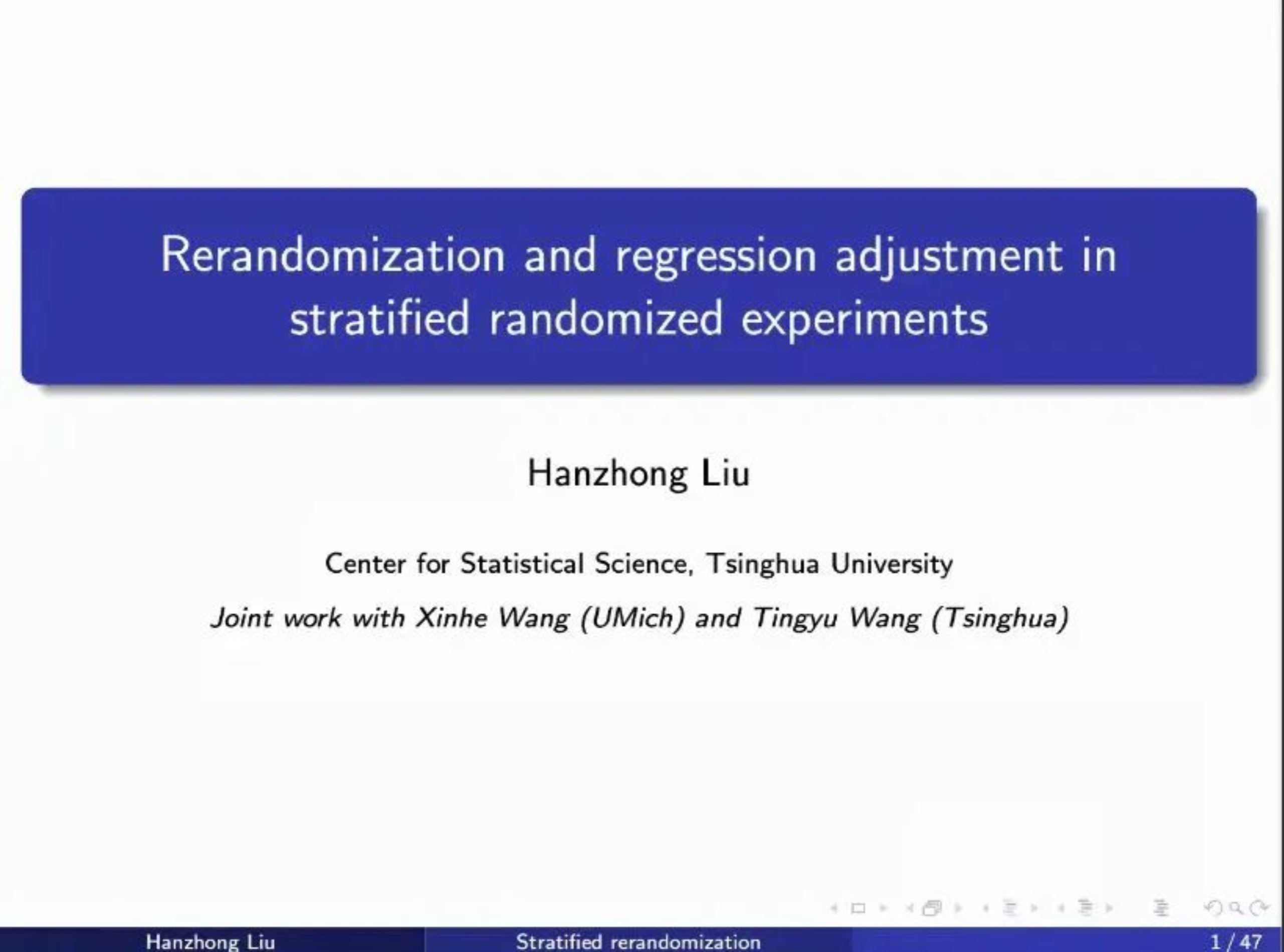 2021年11月19日上午,清华大学刘汉中副教授应探花Porn邀请线上进行了以“Rerandomization and regression adjustment in stratified randomized experiments”为主题的在线报告会。