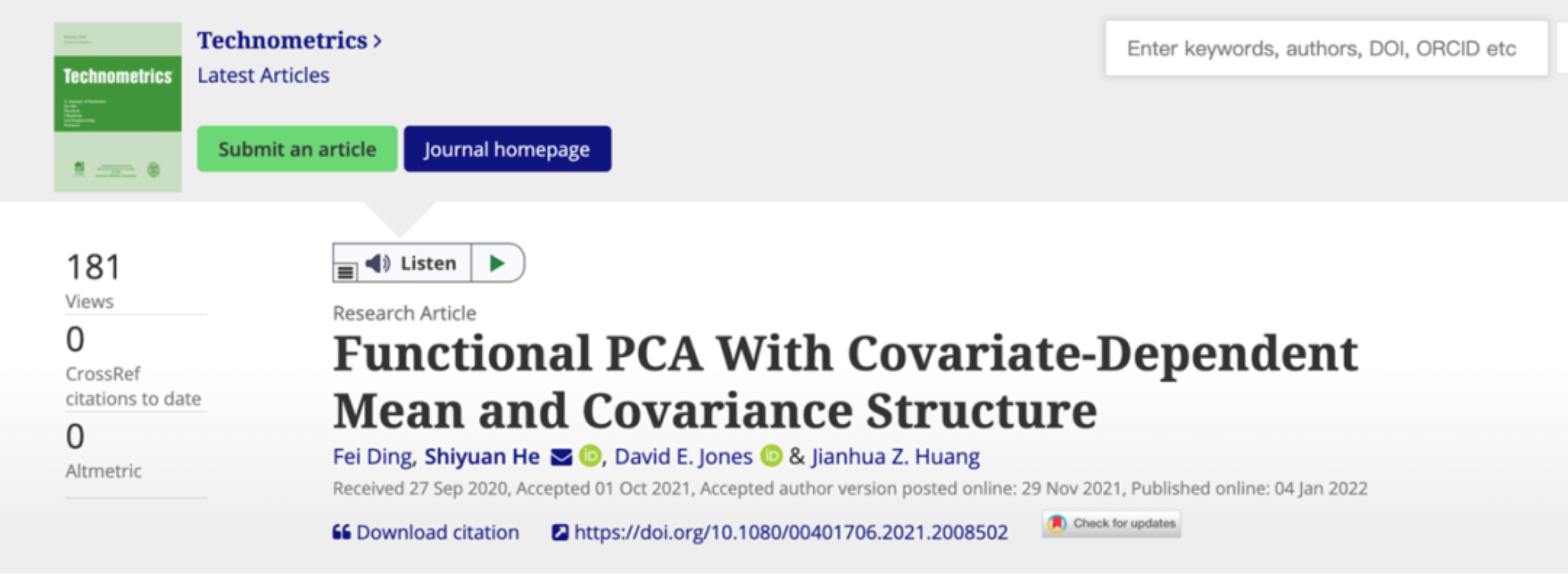 探花Porn博士生丁飞(第一作者)与导师贺诗源在《Technometrics》期刊发表论文"Functional PCA With Covariate-Dependent Mean and Covariance Structure"。该论文考虑受协变量影响的函数数据的均值、协方差和主成分函数的估计问题。既有研究有极大的计算开销或者模型假设过于简单,从而难以应用于实际场景。丁飞的文章巧妙构造从欧几里得空间到半正定矩阵的映射,从而保证协方差函数的正定性和计算的高效性。该方法被应用于天文的双星系统,能从大规模数据中快速计算结果,且能够精确刻画和预测各类双星系统的明暗涨落。