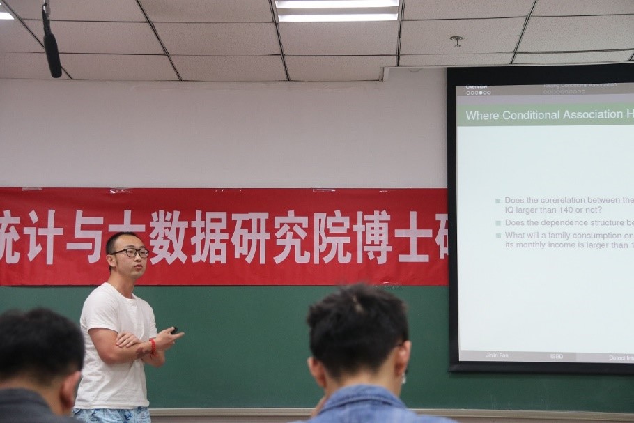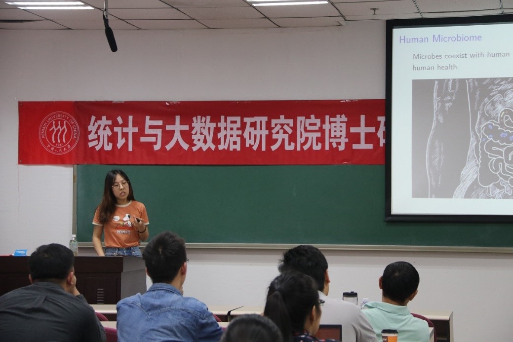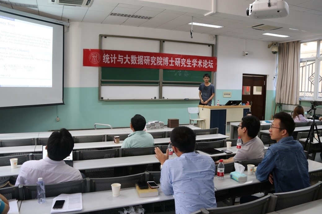 本次论坛共设上下午一天举办,分别在国学馆B113教室、求是楼120教室,10位汇报人分别做了主题演讲,分别是:王庆嵩《Two sample mean test for functional data》;康欣《Generalized Functional Principal Component Analysis via Variational Inference》;叶晗轩《Distributed Dual Averaging for Variational Inference》;樊金麟《Testing Interval correlation》;韩震《Best-scored Random Forest Density Estimation》;吴秋雨《A nonparametric Bayesian approach to simultaneous subject and cell heterogeneity discovery for single cell RNA-seq data》;韩昱《Dynamic Covariance Matrix Estimation using Adaptive Variable/Global Thresholding》;叶小清《Asymptotic Properties of Covariate-adaptive Randomization with K>2》;朱琳《Spatial-temporal analysis of American temperature in 2015》;周方婷《Bayesian double feature allocation with application to compositional data》。