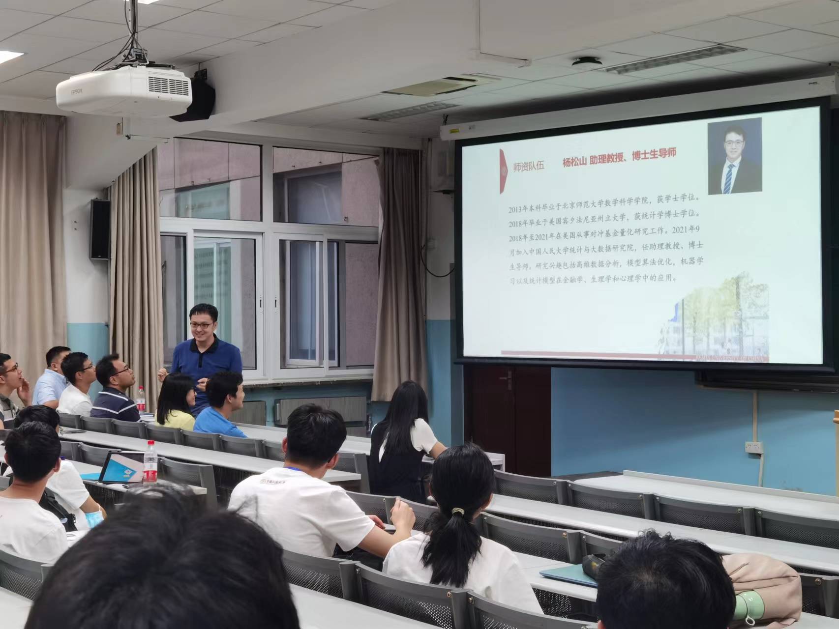 李赛副教授对研究院的基本情况、师资队伍、导师研究方向、科研成果、学生培养、毕业去向等方面做出介绍。随后,到场教师依次向同学们介绍了自己的研究兴趣等内容。