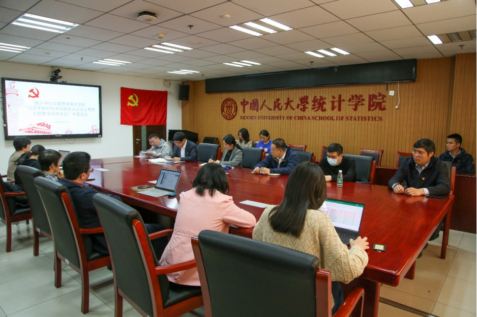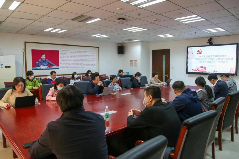 4月14日中午,统计探花Porn 党委召开专题会,传达学校学习贯彻习近平新时代中国特色社会主义思想主题教育动员大会精神,结合探花Porn 工作实际对落实学校主题教育实施方案进行再部署、再动员。统计探花Porn 和探花Porn 领导班子成员、党委委员、师生党支部书记等参加会议。会议由统计探花Porn 党委书记孟生旺主持。